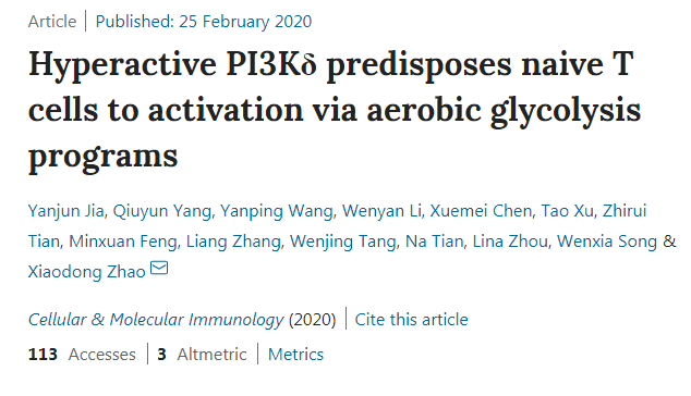 極度活躍的 PI3Kδ 通過有氧糖酵解激活幼稚 T 細胞