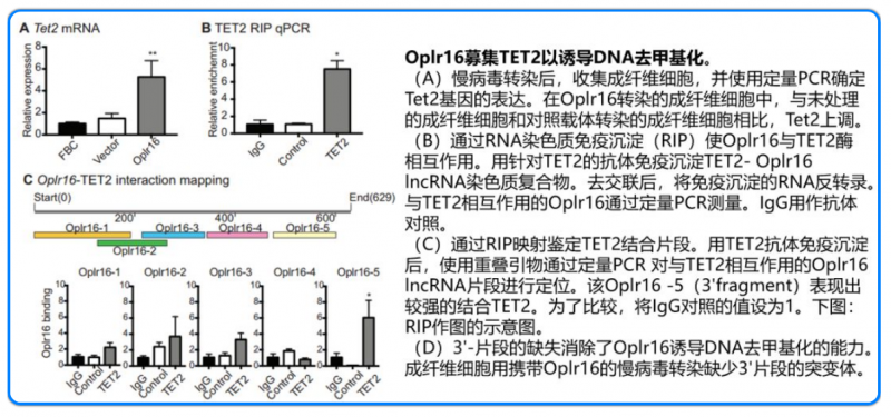 4、甲基化分析 Oplr16 招募 TET2 誘導成纖維細胞 DNA 去甲基化并激活 Oct4,增強重編程。