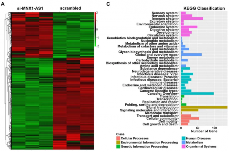 長鏈非編碼 RNA (long non-coding RNA, lncRNA) 是長度大于 200 個核苷酸的轉(zhuǎn)錄本。有研究報道,lncRNA 通過參與調(diào)控細胞凋亡、細胞分化和轉(zhuǎn)移等多種生物學(xué)活動,從而影響癌癥的進展。此外,lncRNA 通過與細胞分子如蛋白質(zhì)、RNA、DNA 等的相互作用,調(diào)控關(guān)鍵基因的異位表達。因此,將 lncRNA 作為胃癌發(fā)生相關(guān)的潛在分子進行研究,未嘗不是一個很好的選擇。lncRNA MNX1-AS1(又稱為 CCAT5)初被認為是在結(jié)直腸癌(CRC) 中高表達的基因。有研究報道稱 CCAT5 通過與 STAT3 相互作用促進 CRC 的進展。另一研究報道稱,E2F1 可激活 CRC 細胞中 MNX1-AS1 的過表達,而 MNX1-AS1 通過海綿吸附 miR-218-5p 增加 SEC61A1 的表達,從而促進 CRC 發(fā)生。此外,MNX1-AS1 高表達組 CRC 患者的預(yù)后明顯差于 MNX1-AS1 低表達組,顯示了 MNX1-AS1 對 CRC 的預(yù)后具有一定的參考意義。越來越多的證據(jù)也表明 MNX1-AS1 過表達存在于多種癌癥中,包括膠質(zhì)母細胞瘤、宮頸癌、胃癌、卵巢癌和乳腺癌。同時有研究發(fā)現(xiàn),MNX1-AS1 水平的升高預(yù)示著 GC 患者的不良預(yù)后,MNX1-AS1 對 GC 具有促進作用。然而,在 GC 中,MNX1-AS1 失調(diào)背后的多種機制在很大程度上仍是未知的。本研究旨在全面探討 MNX1-AS1 介導(dǎo)的 GC 進展機制模型。
