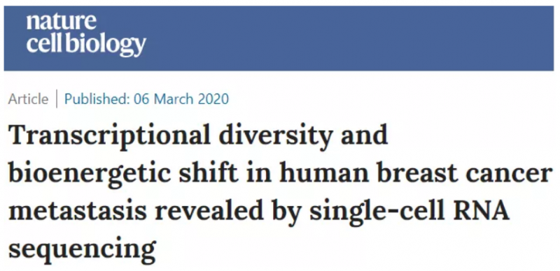 【標(biāo)題】單細(xì)胞 RNA 測序揭示乳腺癌轉(zhuǎn)移的轉(zhuǎn)錄多樣性和生物能量轉(zhuǎn)移