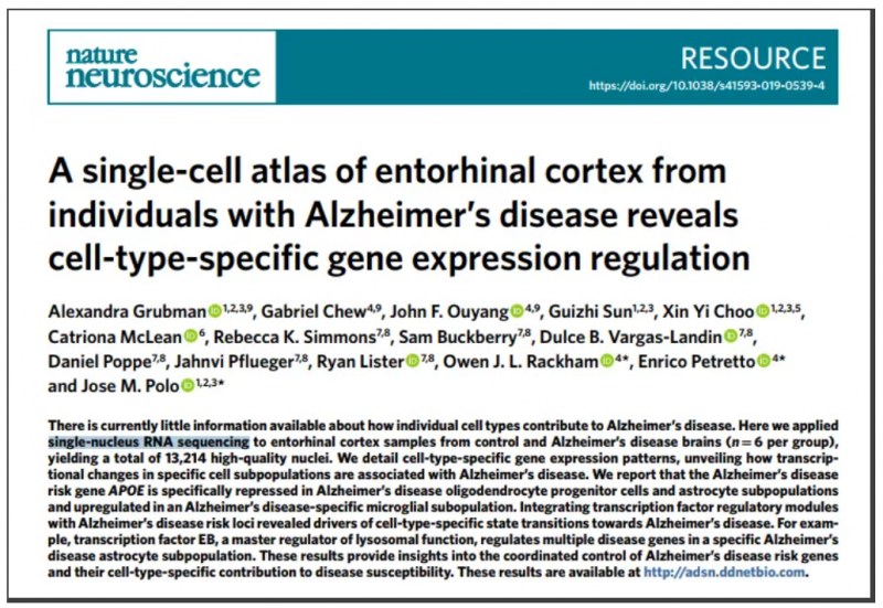 此外,我們也整理了近年來針對于腦組織的單細胞測序的文章,發(fā)現(xiàn)針對于腦組織的單細胞測序, 通常選擇的是 snRNA-seq 而非 scRNA-seq,例如: