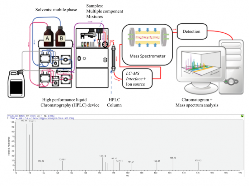 質(zhì)譜技術(shù): 通過(guò)對(duì)化合物分子進(jìn)行電離,生成不同質(zhì)荷比(m/e)的離子,經(jīng)加速電場(chǎng)的作用進(jìn)入質(zhì)量分析器。在質(zhì)量分析器中,再利用電場(chǎng)和磁場(chǎng)使發(fā)生相反的速度色散,將它們分別聚焦而得到質(zhì)譜圖。質(zhì)譜圖中的橫坐標(biāo)表示離子的質(zhì)荷比值,縱坐標(biāo)表示離子流的強(qiáng)度。