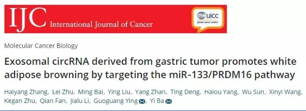 中文題目:胃癌細胞外泌體 circRNA 通過靶向 miR-133/PRDM16 通路促進白色脂肪褐變