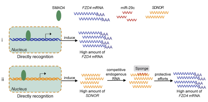 摘要:TGF- β 和 Wnt 信號通路在許多細胞類型和組織中相互關聯(lián),并協(xié)調(diào)控制細胞功能。這篇文章中,報道了 TGF- β 信號通路的下游效應因子 SMAD4 誘導 Wnt 信號通路的受體 FZD4,建立了顆粒細胞(GCs) 中這兩條通路之間的新的途徑。研究者發(fā)現(xiàn) SMAD4 是 FZD4 的強誘導劑,不僅啟動 FZD4 轉(zhuǎn)錄,而且激活 FZD4 依賴的 Wnt 信號和 GC 凋亡。研究者確定了 SMAD4 促進 GC 中 FZD4 表達的直接和間接機制;SMAD4 促進 SDNOR 的產(chǎn)生,SDNOR 是一種新的 lncRNA,作為 miR-29c 的海綿,提供了另一種阻止 miR-29c 退化 FZD4mRNA 的手段。該研究不僅揭示了 TGF- β 和 Wnt 信號通路 SMAD4-FZD4 軸之間的一個新的串擾通道,而且為 GC 凋亡和卵泡閉鎖的調(diào)控網(wǎng)絡提供了新的見解:這些 RNA 分子,如 miR-29c 和 lnc-SDNOR,是治療生殖疾病和提高女性生育能力的潛在靶點。