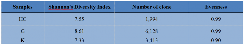 對樣本進行多樣性分析,多樣性指數(shù)和均一度如下表所示: